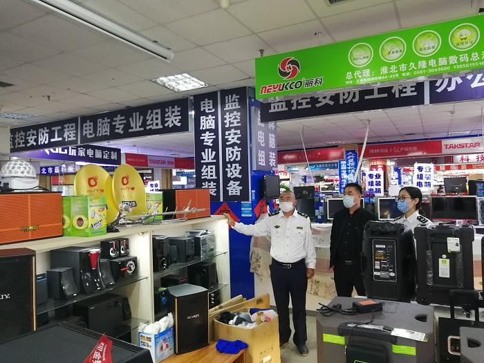 2020年5月14日下午,市文旅体局广播影视科联合市文化市场综合执法支队在久兴批发市场周边开展市场巡查。本次市场巡查围绕打击非法地面卫视接收设施专项整治行动,盯紧市场销售关键环节,在批发市场负一层家电售卖场和四楼久兴电脑城检查发现两家涉嫌售卖非法卫星电视地面接收设施店铺后,执法人员现场告知经营店铺停止违规销售行为,同时,对经营者开展了相应的宣传教育并进行有关政策解读。