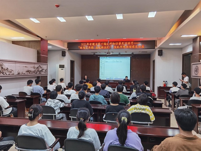 9月16日,在2021年安徽省第17届社科知识普及活动月中,淮北市博物馆举办“辉煌百年路 启航新征程 ”党史讲座。市委党史和地方志研究室主任王超以《‘小推车之问’——543万人民群众踊跃支援淮海战役的原因分析和历史启示》为题,引用习近平总书记在庆祝中国共产党成立100周年大会上的重要讲话内容,随后从淮海战役支前概况谈起,列举了淮海战役在三大战役中“五个最”的比较、淮海战役敌我双方力量的悬殊以及淮海战役中淮北地区支前人力、财力、物力的主要数据统计;同时结合具体实例,解读了数以万计的人民群众通过参军、支援前线追随中国共产党,全力以赴甚至不惜付出生命代价支前的背后原因分析;最后阐释了淮海战役中贯彻执行党的群众路线的成功经验,以及新时期如何贯彻党的群众路线、做好群众工作的历史启示,讲座取得了良好效果。