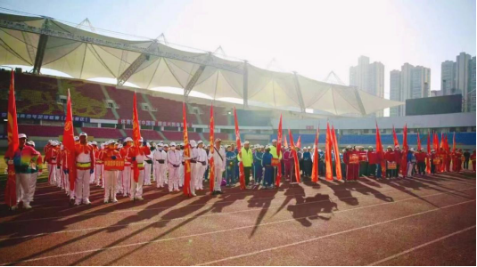 开幕式前柔力球专委会、 供电社区舞蹈团、健身球专委会、 登山徒步协会分别演出了柔力球表演《梦想起航的地方》、持杖操表演 、健身球表演《南泥湾》和骏马科学健身走表演 。