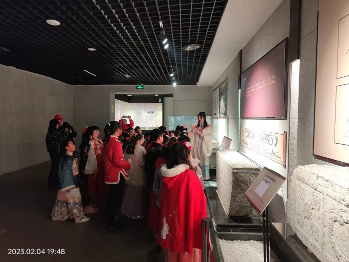 参加活动的同学们身穿汉民族的传统服饰,跟随志愿者老师游览博物馆,了解各朝代的藏品和历史文化。随后,老师带领同学们深入了解元宵节的习俗、猜灯谜的方法技巧,同学们兴致勃勃地漫步在博物馆中,踊跃参与,在你一言我一语的互动中,谜底逐个被揭开。